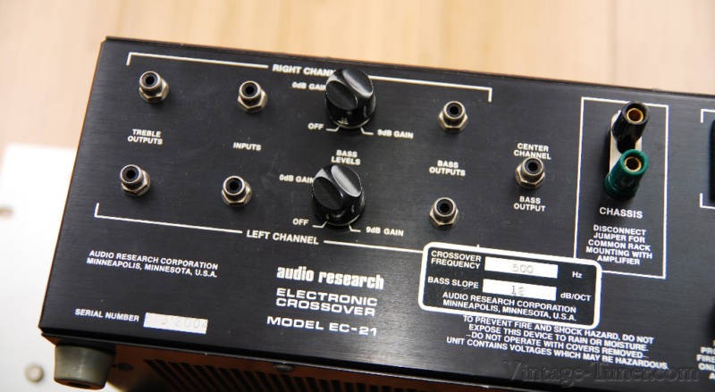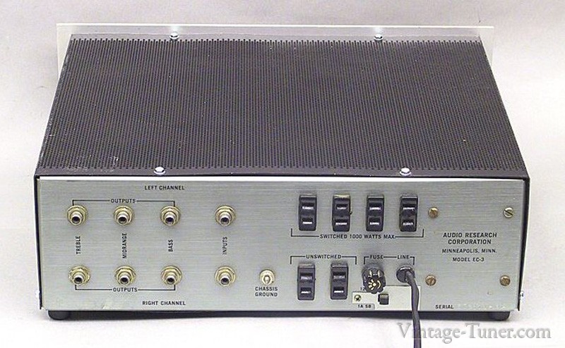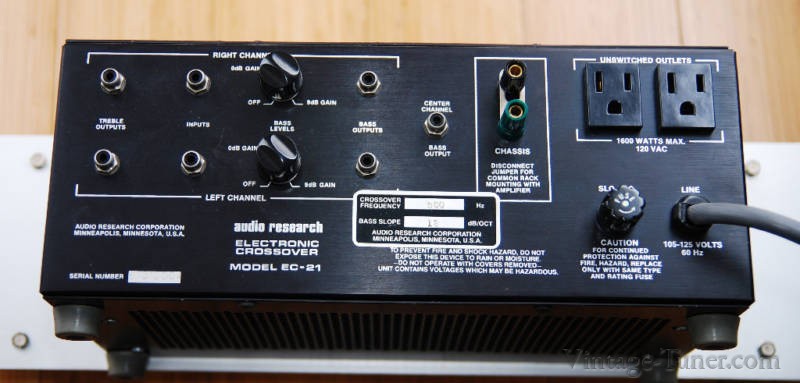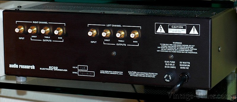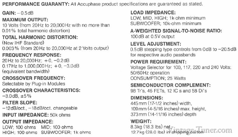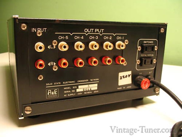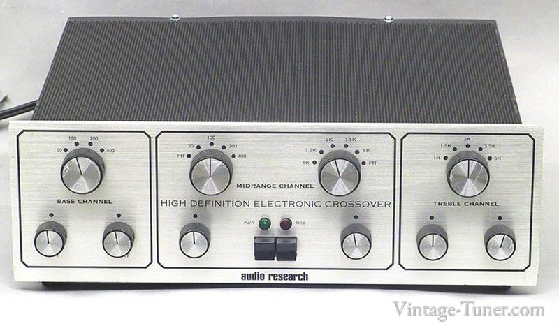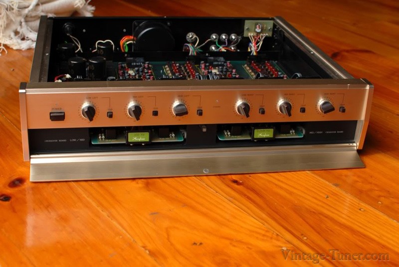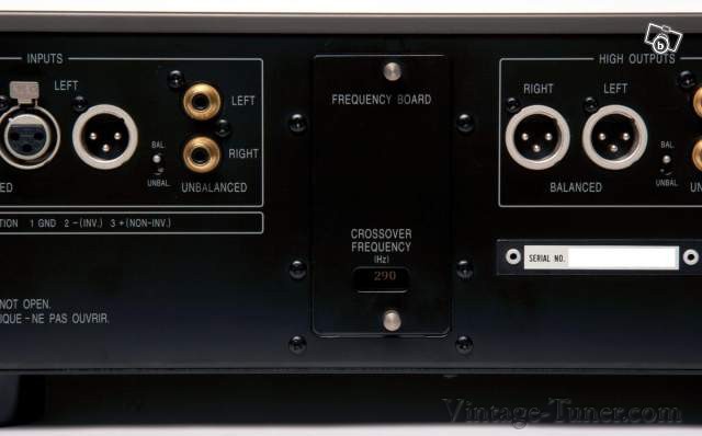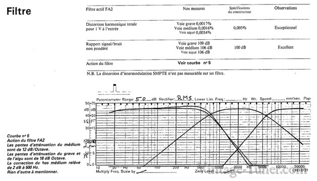 Filtre actif 3 voies de 1978, coupure fixe : 600 et 5000Hz, médium 12dB par octave, grave et aigu 18dB par octave.