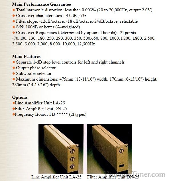 Le F-25 intègre un diviseur de fréquences-CPG (Generalized lmmittance Converter) pour des réglages très précis de la fréquence de coupure et de l'atténuation.