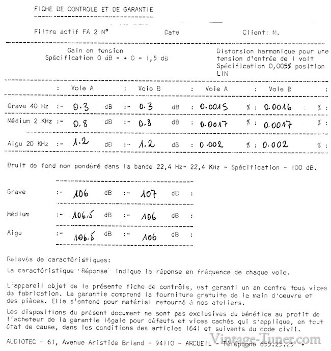 Chaque appareil était livré avec sa propre fiche de mesure puisque les catalogues affichaient les "caractéristiques techniques minimales garanties".