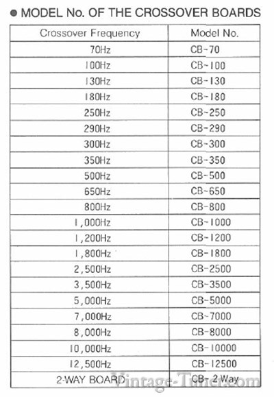 Crossover points Selectable: 50/100/400/500/800/1k/1.5k/2k/3.5k/5kHz