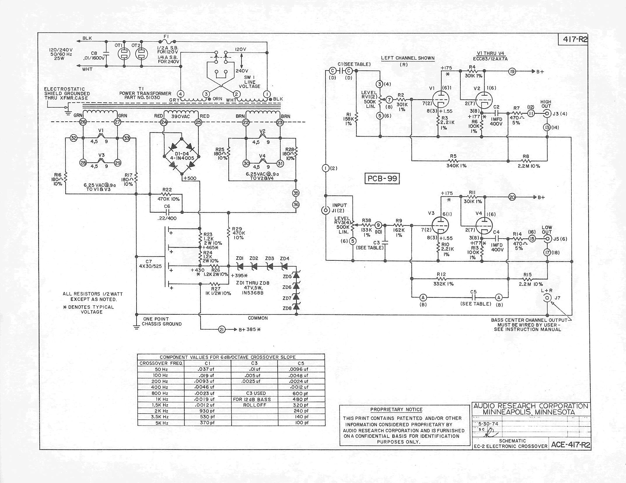 Filtre 2 voies à tubes 1980, 6 ou 18 db/oct