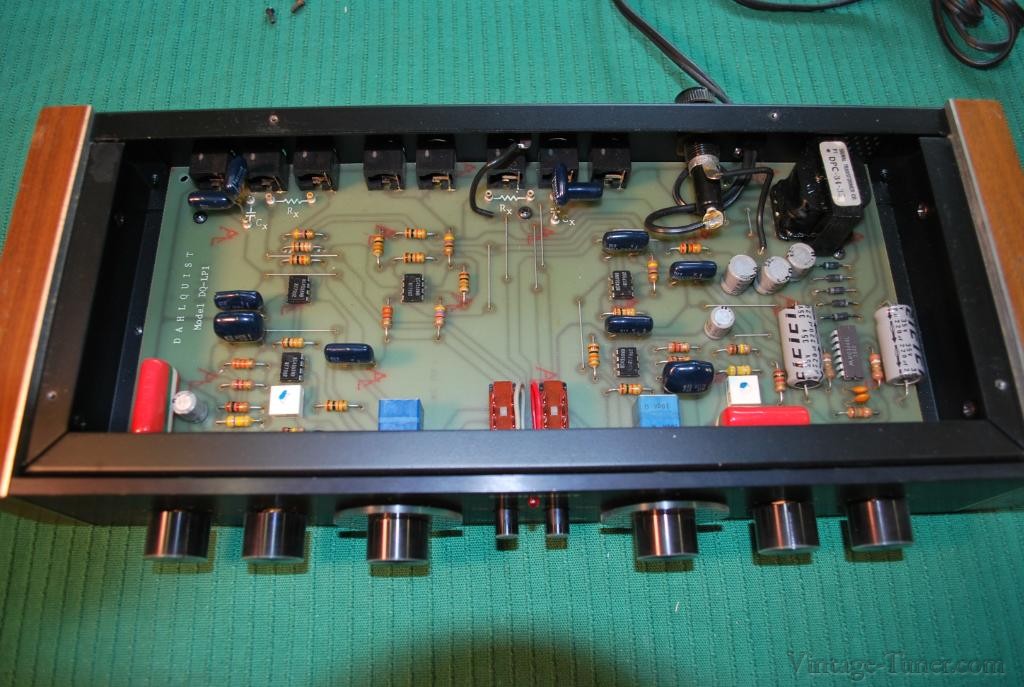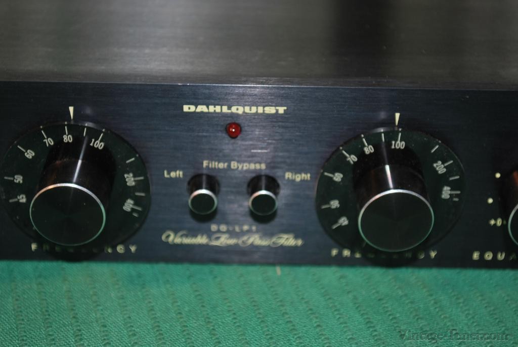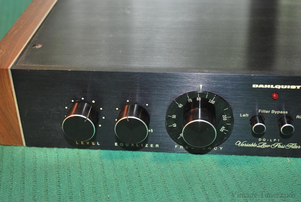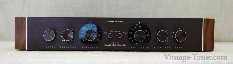 The Dahlquist DQ-LP1 is a unique line-level crossover which combines an electronic lowpass filter with a completely passive high filter. The LP1 is intended primarily for integrating a subwoofer into an otherwise full range loudspeaker system. It may also be used in the bi-amplification of a single loudspeaker system where the crossover point is from 40 to 400Hz. As with other electronic crossovers, the LP1 is connected between the preamplifier and the two power amplifiers; one amplifier feeds the main speaker, the other drives the subwoofer(s). (Please note: The LP1 requires the use of a second power amplifier.) The active low-pass section, which feeds the subwoofer amplifier, is continuously variable from 40 to 400Hz and provides a cut-off rate of 18dB per octave. This steep slope is achieved through a non-ringing, staggered arrangement of 6-12-18 dB/octave slopes, preserving bass transients. Distortion is exceptionally low, measuring 0.005% THD. Of particular importance in a device of this type is the performance of the high pass section which feeds the main power amplifier. Any distortion introduced in this stage will noticeably degrade the important middle and upper frequencies. In order to avoid such degradation, the high pass section of the LP1 is purely passive. Distortion is unmeasureable by normal techniques. If it were possible to measure the THD of the LP1’s high-pass section, we would expect a figure like 0.000001% Since the high-pass section is passive, it may be necessary, depending on the desired crossover frequency and the main amplifier’s input impedance, to insert a capacitor or resistor into the terminals provided on the LP1’s printed circuit board. We have designed this to be simple enough for the average consumer to do himself—instructions and a kit of resistors and capacitors are provided with each unit—but, of course, the service technician may be called on in some cases. The high-pass section can be set for any frequency from 40 to 400Hz; its slope is 6dB/octave. This combination of active and passive circuitry insures the sharp cut-off and ‘’tuneability’’ required to best integrate a subwoofer into a loudspeaker system, while not degrading main speaker performance. The Owner’s manual provides complete instructions for the hook-up and tuning of the LP1, including an easy to use chart showing the appropriate combination of resistors and/or capacitors to achieve a variety of crossover points.