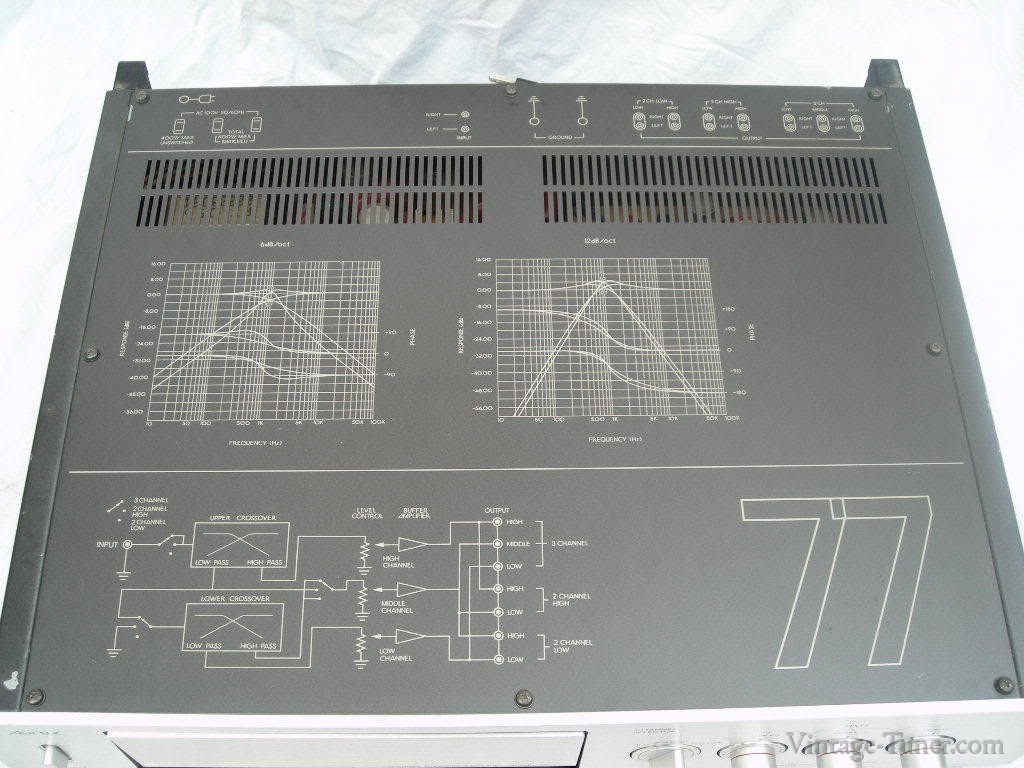 The unit contains an active low-frequency crossover (low-pass circuit), a low-frequency feedback control circuit, and a passive midrange crossover (high-pass circuit). Additional equalization and level controls are also provided. The electronic crossover unit connects into the signal path between your preamp and power amplifiers.