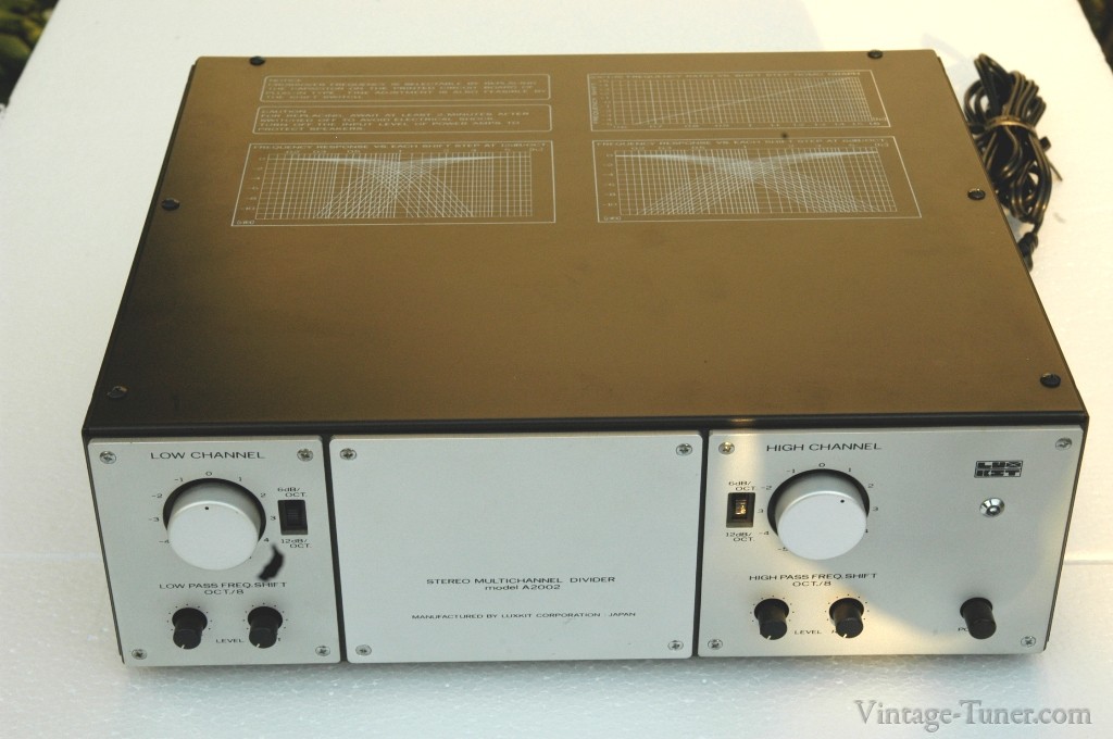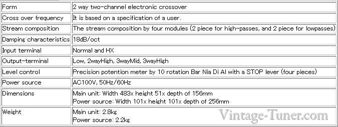 A fréquence fixe mais avec cartes interchangeables sur slots pour changement de la fréquence de coupure, en 6 et 12 dB/oct, tubes 12AU7 ECC82