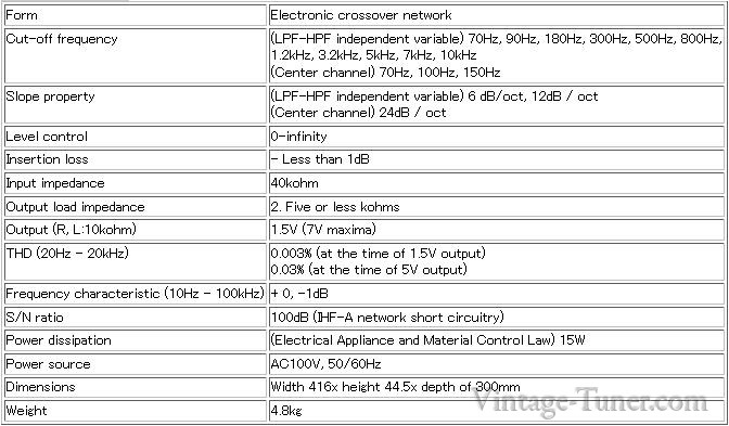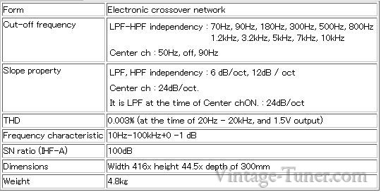 The center channel for subWoofers is equipped. Cut-off frequencies are 70Hz, 100Hz, and 150Hz. The slope property is 24 dB/oct.