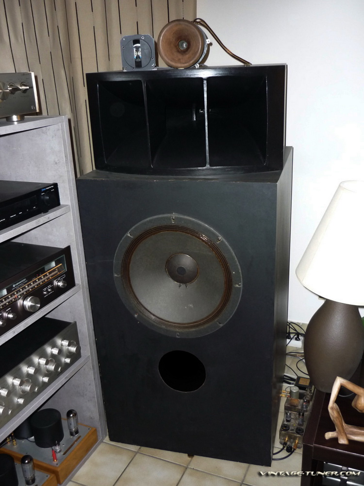 - Bass: Altec 416 8-B, 38 cm en caisson bass-reflex de 250 litres interne pour 370 litres externes.