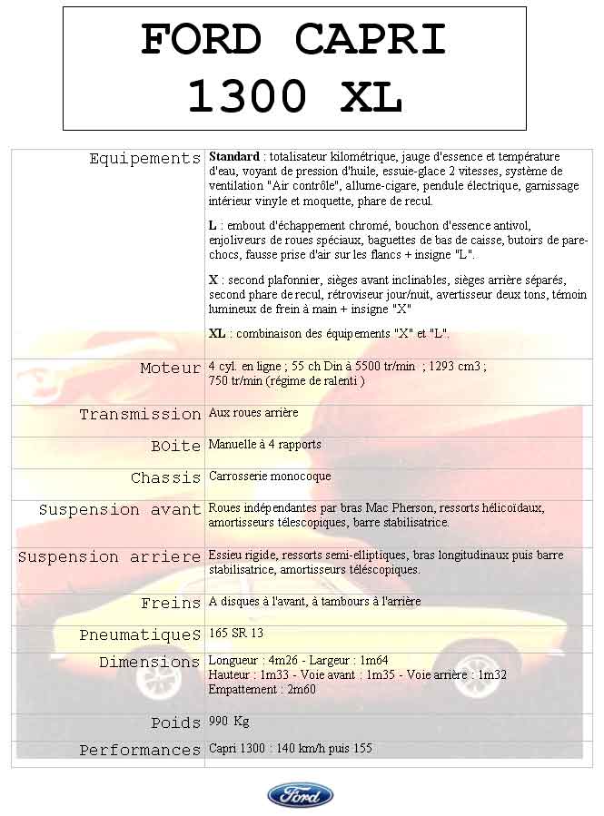 Avant mon déménagement, j'en avais une que j'avais restauré de A à Z. Tout était refait, mécanique et carrosserie. On pourrait penser qu'il s'agissait d'une voiture toute neuve. Malheureusement pour financer un peu le déménagement j'ai vendu la Capri. Quel dommage, je le regrette encore tous les jours.
