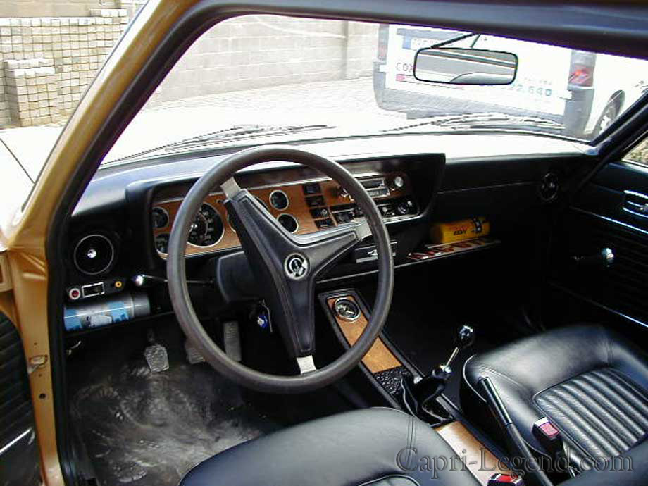 J'ai refait la caisse en AMBER GOLD et j'ai refait l'intérieur à l'origine. Pourquoi? Mon père était décédé et en 1969 il avait acheté cette Capri dans cette couleur. Des années plus tard, je pourrais dire que j'avais de nouveau la voiture de mon père devant moi...