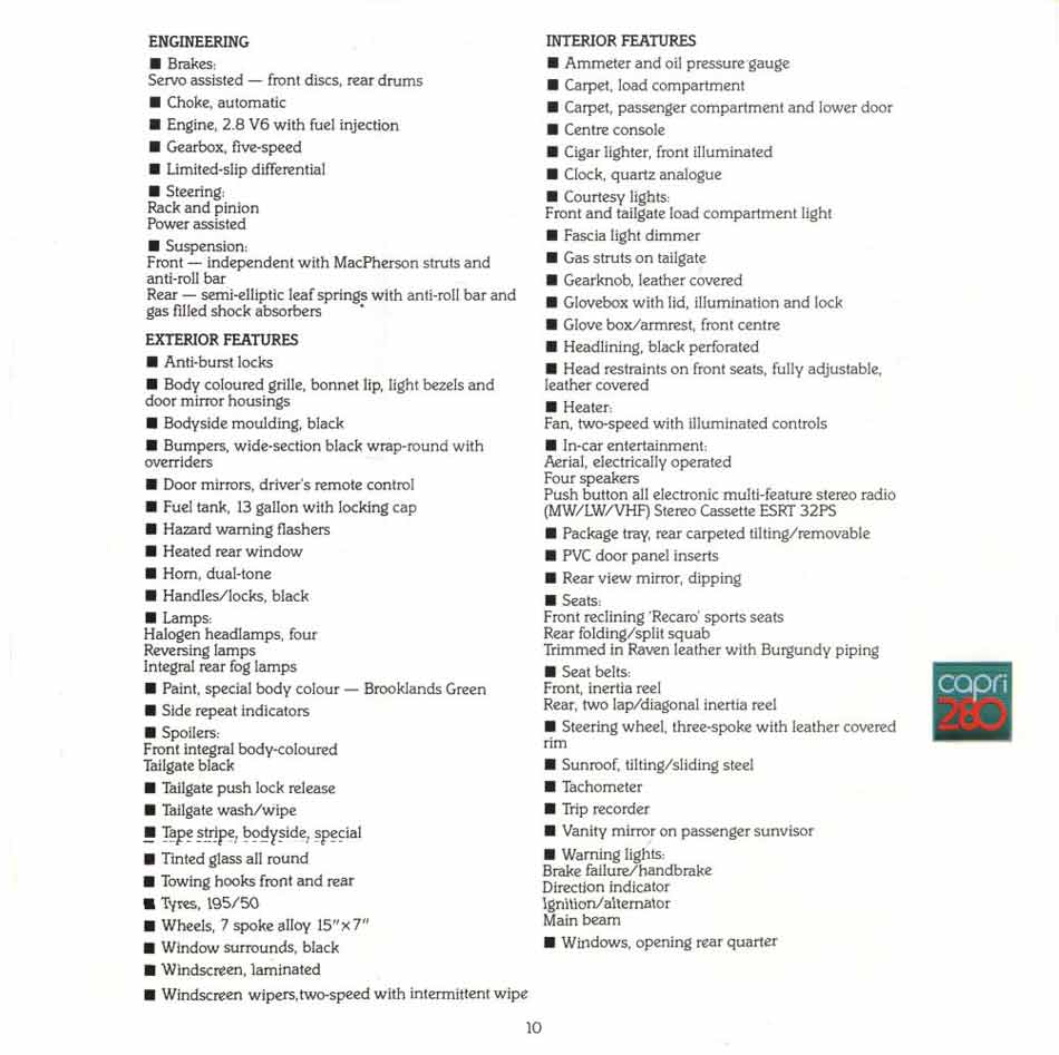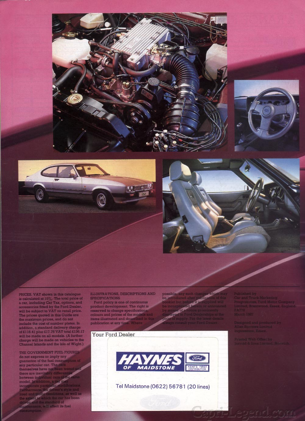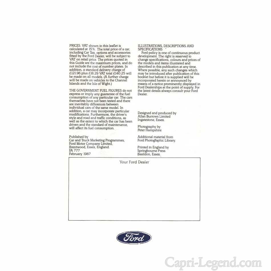 Catalogue Ford Capri 2.8 injection Special 1986 - GB