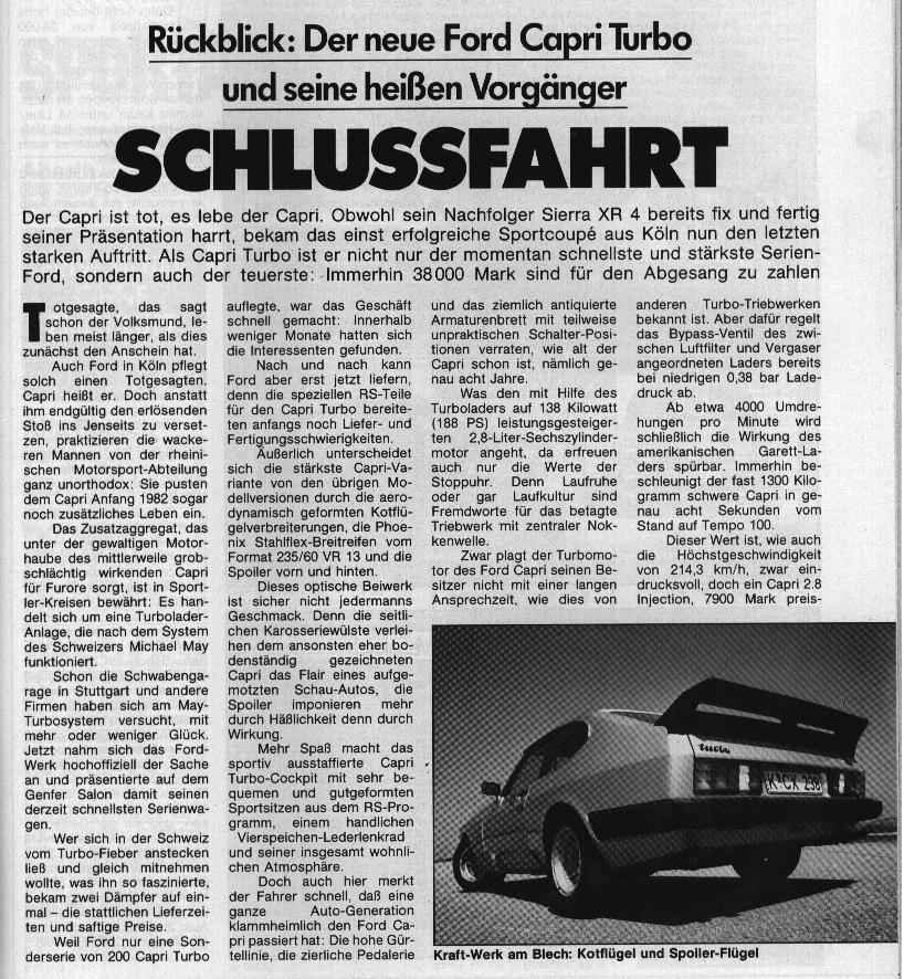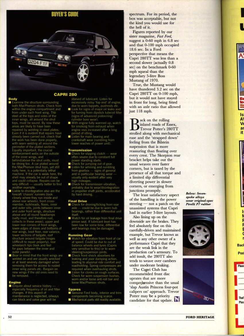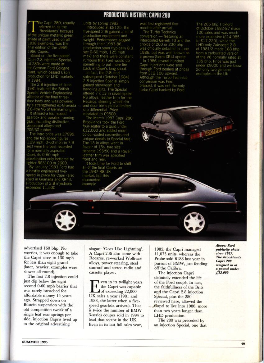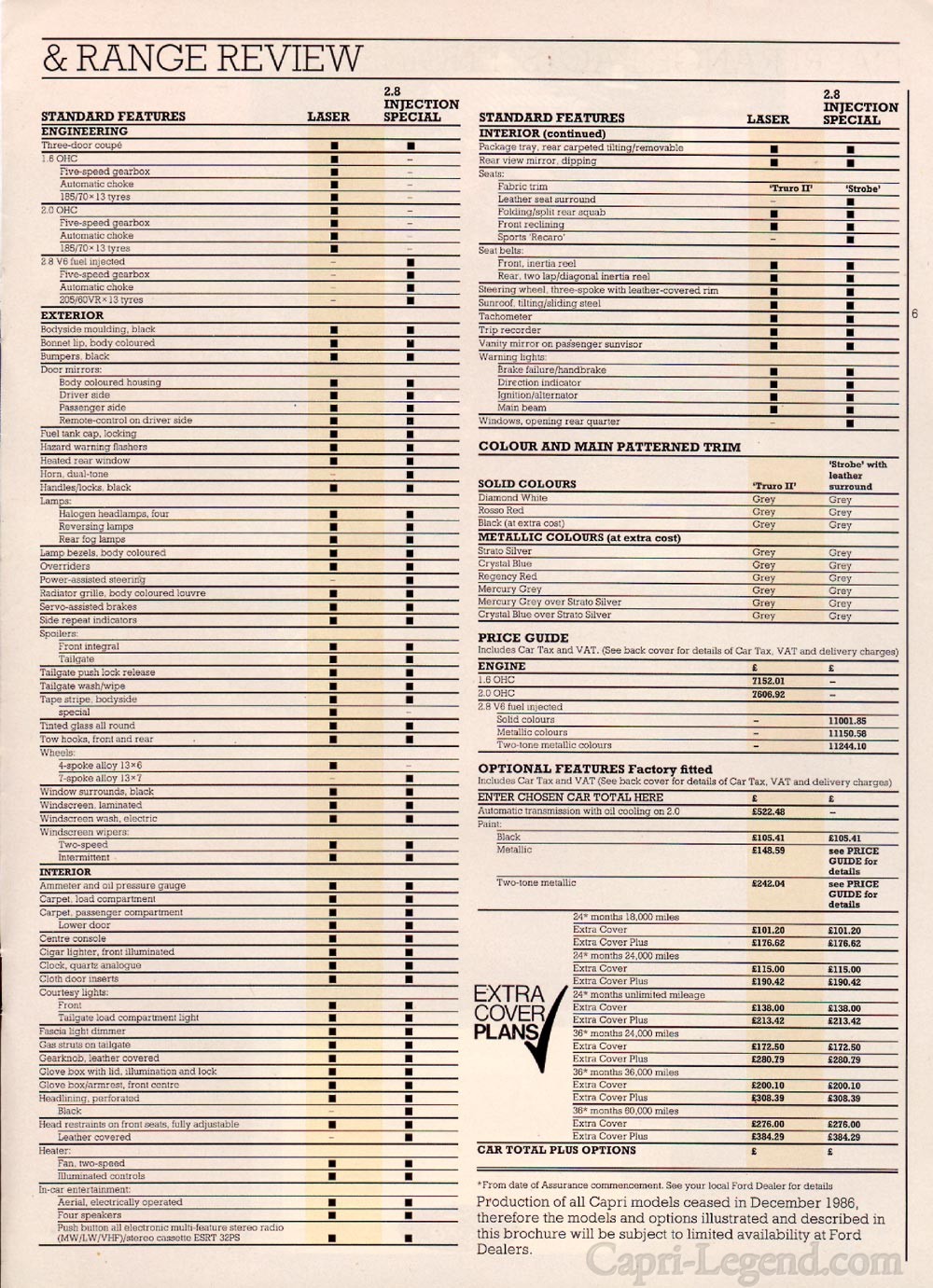 Catalogue Ford Capri 2.8 injection Special 1986 - GB
