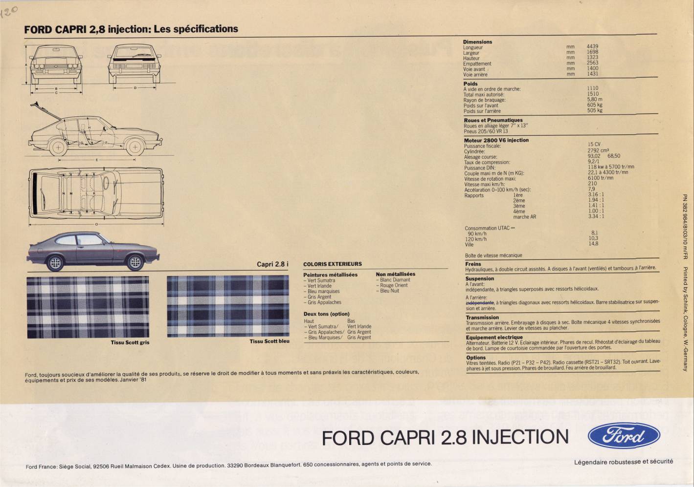 Catalogue Ford Capri 2.8 injection 1981 - F