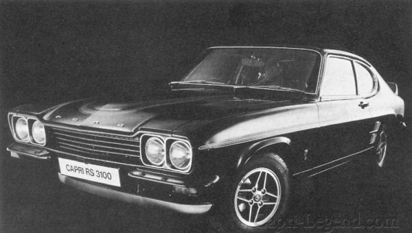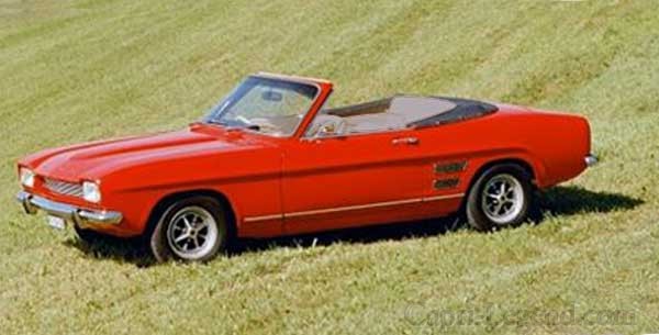 Octobre 1971: En Angleterre, cabriolet Capri Crayford (Kent)en 1600 et 2000 cm3. Evolution RS2600, disques ventilés et nouvelles jantes alu.